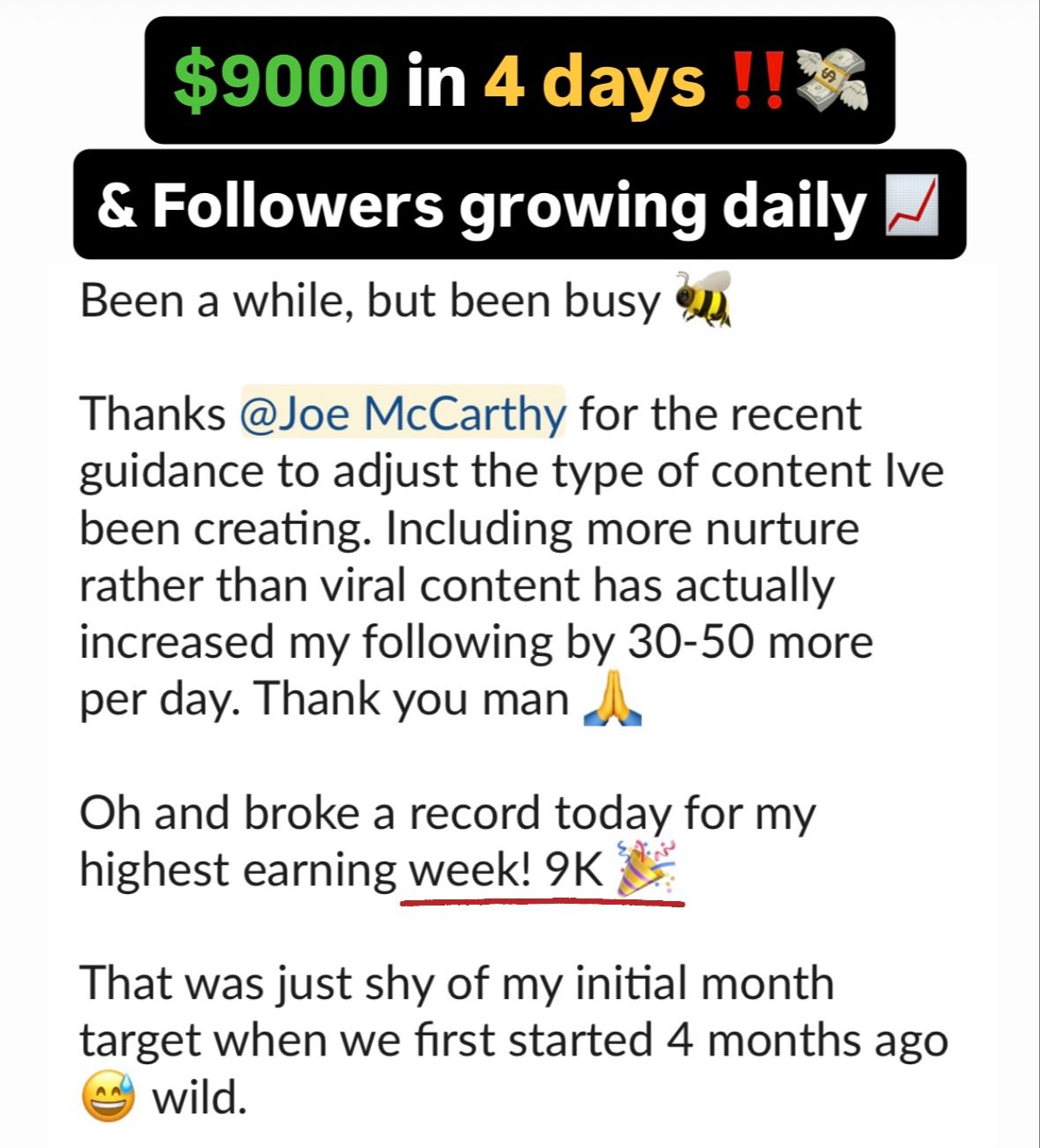 Over the past 4 years, I’ve been able to grow my following to over 400k, I am consistently bringing in over $30k per month profit through my existing audience. Achieving this now gives me the freedom to travel and live anywhere in the world, knowing wherever I am, I have a strong enough brand and offer that will continue to bring in $.
